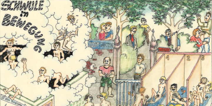 Dort sieht man in einer Laube mehrere Nackte, die sich neugierig beäugen. Einer überreicht dem anderen eine Blume. Die schwule Ästhetik ist kein Zufall. Der Maler witzelte in Briefen an seinen Freund Willibald Pirckheimer offen über dessen sexuelle Vorlieben für „italienische Soldaten“. Einen gut dokumentierten Bäderboom gab es auch im rasant wachsenden Berlin des 19. Jahrhunderts. Damals entstanden viele Volks- und Dampfbäder, Bade- und Waschanstalten. Nicht der Wellness wegen, sondern weil die meisten damals kein Badezimmer hatten. Wer mal duschen wollte, musste in die Anstalt. Einige waren auf ein queeres Publikum spezialisiert. Erstmals aufgelistet werden sie im „Führer durch das lasterhafte Berlin“ von 1931. Der empfiehlt nicht nur „Lesbische Lokale“ und solche „des mannmännlichen Eros“, sondern auch „Nacht-Badeanstalten“.